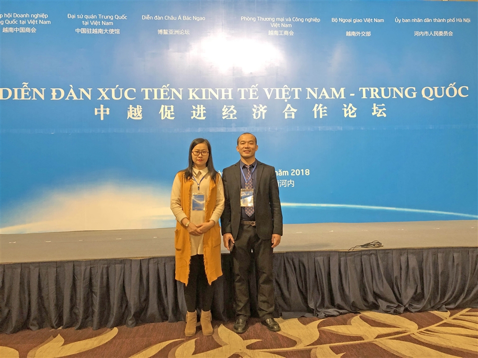廣西金沛教育執(zhí)行董事粟宥朝(右一)、校長(zhǎng)張金雪(左一)參加博鰲亞洲論壇河內(nèi)會(huì)議