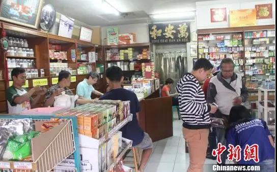 ▲圖為萬隆市具80多年歷史的“萬安和”中藥店,土生土長的印尼顧客越來越多,而且他 們中的絕大部分都成了“回頭客”。林永傳 攝