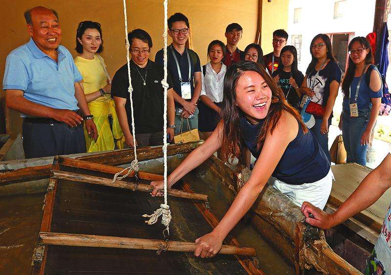 6月12日,在陜西省西安市起良蔡侯紙博物館,13位來自新加坡的青年朋友在工匠的指導下,學習體驗古法造紙技術,感受中國傳統(tǒng)文化的魅力。