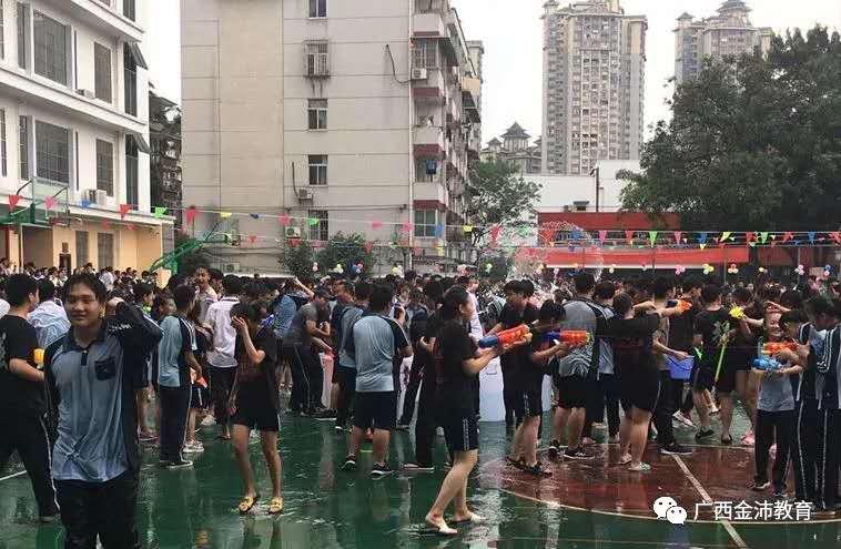 活動(dòng)開始,高三學(xué)子進(jìn)行“游龍翻身”的游戲,取“游龍翻身取金榜,十五中學(xué)我最棒”的含義。接下來身著東盟各國傳統(tǒng)服飾的學(xué)生為大家獻(xiàn)上了優(yōu)美的東盟國家舞蹈,展現(xiàn)了東盟各國的傳統(tǒng)舞蹈的魅力。隨后由學(xué)校校長帶隊(duì),各年級老師共同參與,手持水瓢,將滿載祝福的水輕灑向所有高三學(xué)子,拉開了潑水狂歡的序幕。伴隨著歡快的音樂,潑水狂歡將本次活動(dòng)帶向高潮,大家積極參與,手持水盆、小桶、水槍,你追我趕,相互潑灑,傳遞著著祝福與歡樂。以多種形式將各國文化風(fēng)情融入學(xué)生的心理教育中。