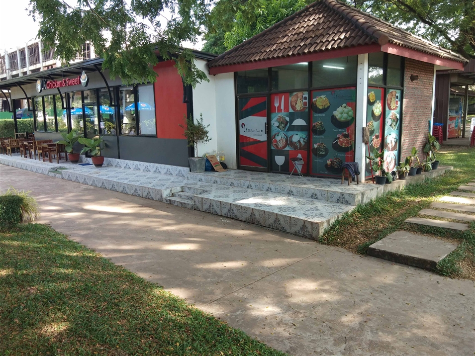 郁郁蔥蔥的東南亞特色的植被中,紅白相間的老撾語教學(xué)樓十分醒目,跳躍在金色陽光下的東南亞特色建筑教室,顯得干凈整潔。
