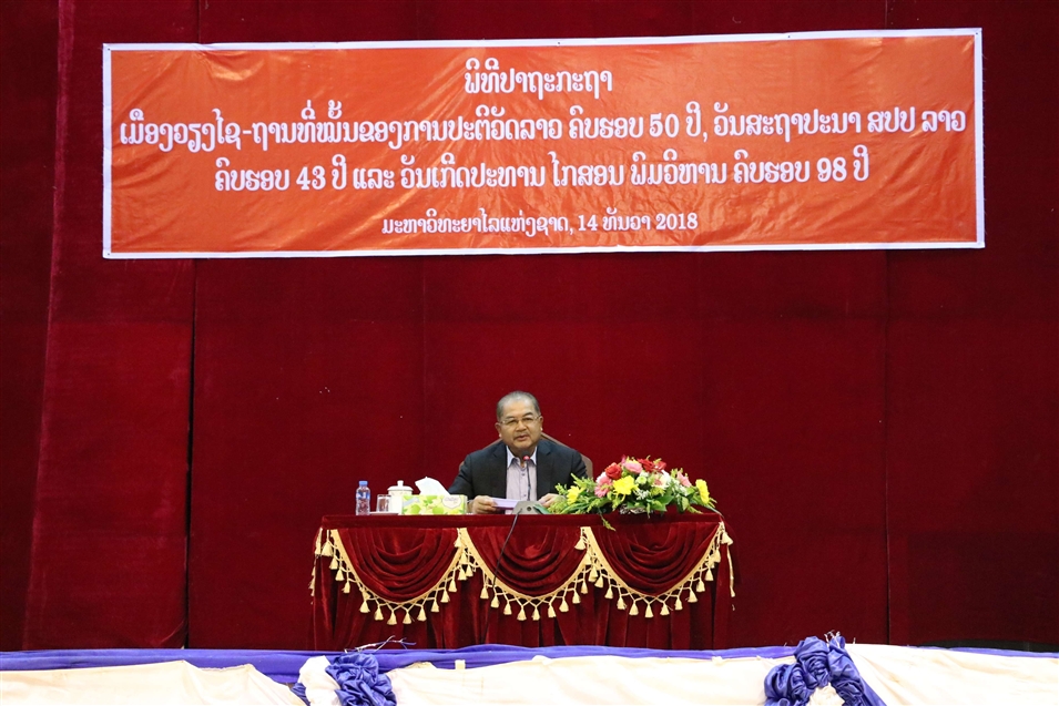 老撾國立大學(xué)領(lǐng)導(dǎo)班子、骨干教師和全體師生參與了本次會議,大家共同收聽了“建立華潘省會曬市革命根據(jù)地50周年”,“老撾人民民主共和國成立43周年”,“主席誕辰地方梵住(佛教名詞)98周年”等重要講話內(nèi)容,深入學(xué)習(xí)講話精神。