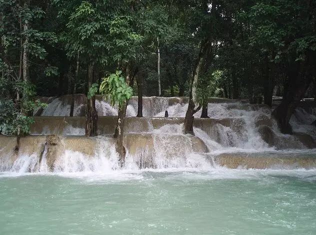 (1)方位:在瑯勃拉邦的南邊大約30km處,是由一個大瀑布和山下多個小瀑布組成的瀑布群,總落差100米。