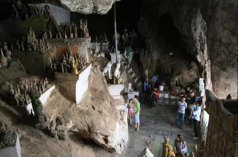坦普坎溶洞是老撾人心中神圣的地方,受歡迎的大部分原因是因為溶洞里的瀉湖,主洞室供奉著一尊泰國風(fēng)格的青銅臥佛,有幾條幽深的地道從主洞室分岔進入山腹。