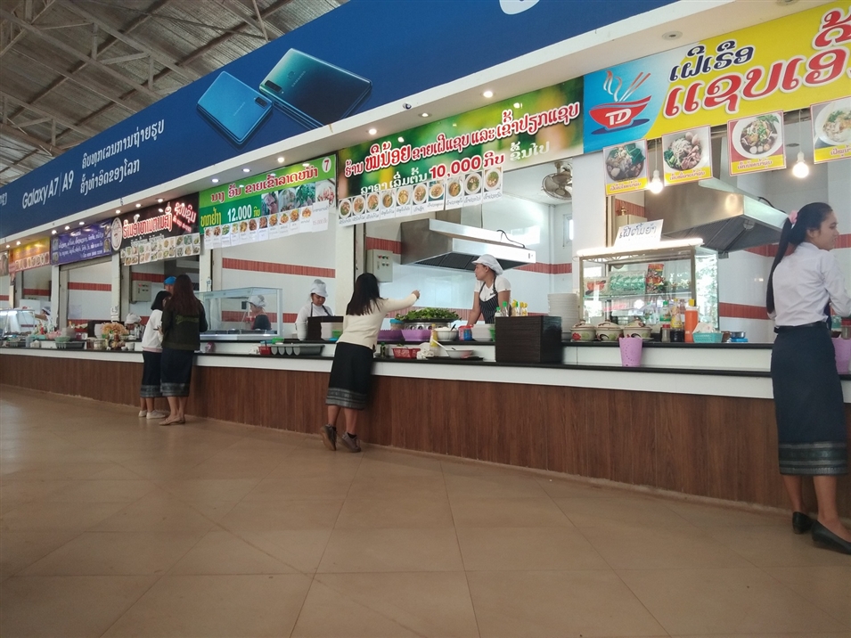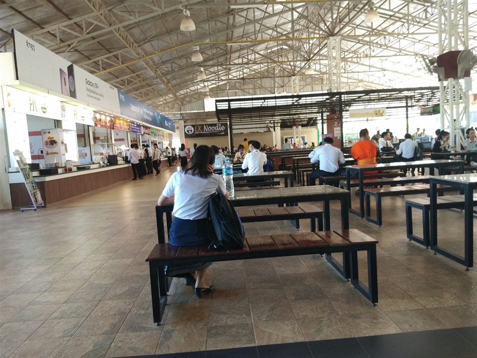 老撾國立大學(xué)的食堂帶有很濃郁的東南亞風(fēng)格,與中國高校的密封式建筑不同,它的四面圍墻基本都以玻璃窗和柱子代替,因此通風(fēng)和采光都很不錯(cuò),食堂里不會(huì)充斥著各種食物交雜的悶熱氣息。