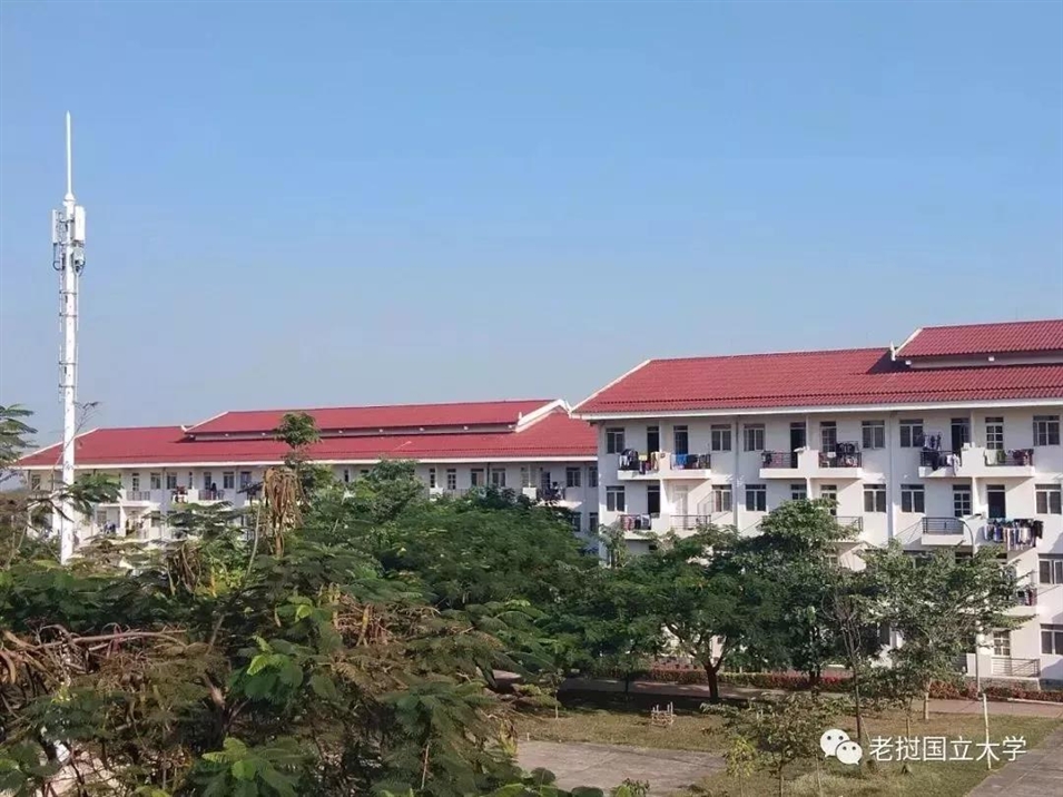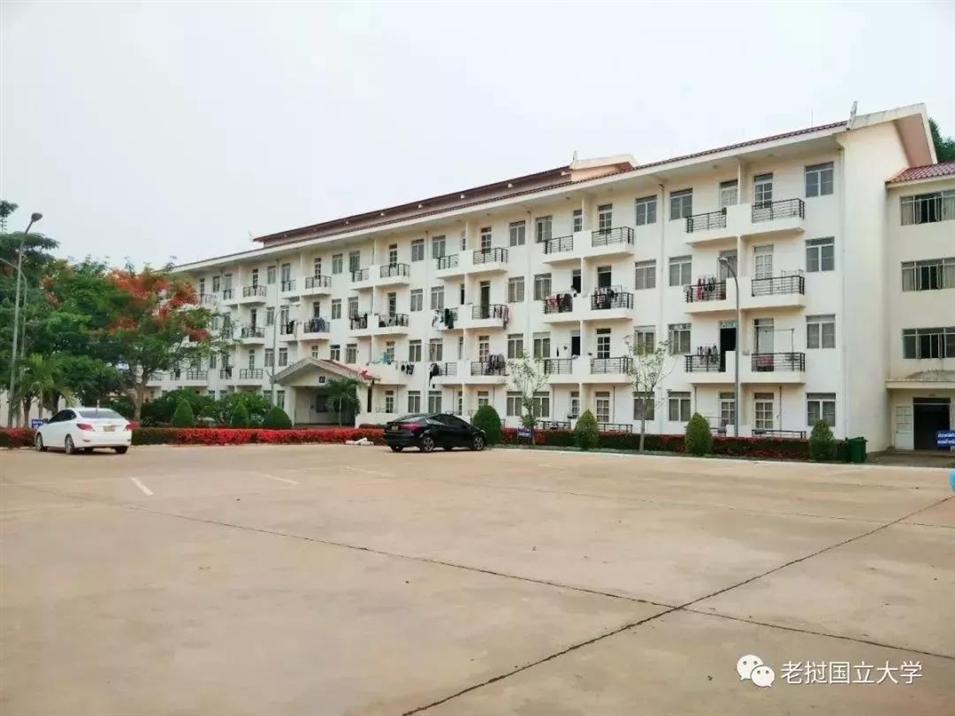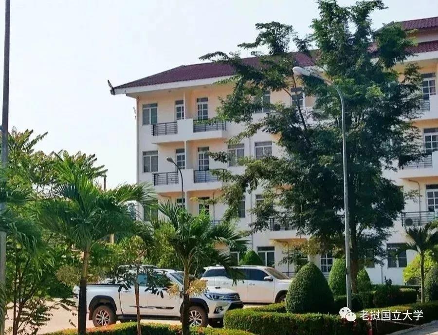 老撾國立大學校園面積很大,富有東南亞特色的熱帶植被,也保留了很多原始花木,宿舍大門有沒有一種要穿越時空隧道的感覺,高大的樹木遮蔽著宿舍樓,樓下環(huán)境優(yōu)美自然,很適合學習交流