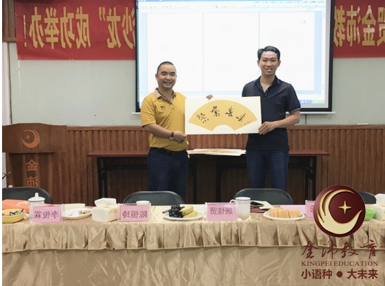 中華文化博大精深,在書法上的文化內(nèi)涵更是獨(dú)樹一幟,為加強(qiáng)中越兩國(guó)的文化交流,提高兩國(guó)間傳統(tǒng)文化的相互了解,金沛教育鳳嶺校區(qū)執(zhí)行董事、著名書法家岑亭儒給大家詳細(xì)講解了《中越文化之中國(guó)書法文化篇》,為中華傳統(tǒng)文化的發(fā)揚(yáng)也出了一份力,并代表金沛教育向越南代表贈(zèng)送了寓意為中越友誼的書法作品。