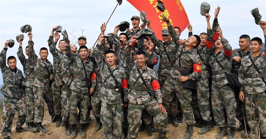 掃雷官兵在完成中越邊境廣西段某雷場(chǎng)清理工作后慶祝