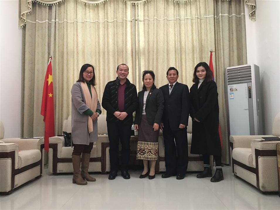 2018年1月10日上午,廣西金沛教育執(zhí)行董事粟宥朝先生、校長張金雪女士、新媒體中心韋文靜女士一行訪問老撾人民民主共和國駐南寧總領事館,受到總領事萬?!ぞS麗雅彭女士、副領事坎平·蘇立亞翁先生的熱情接待。